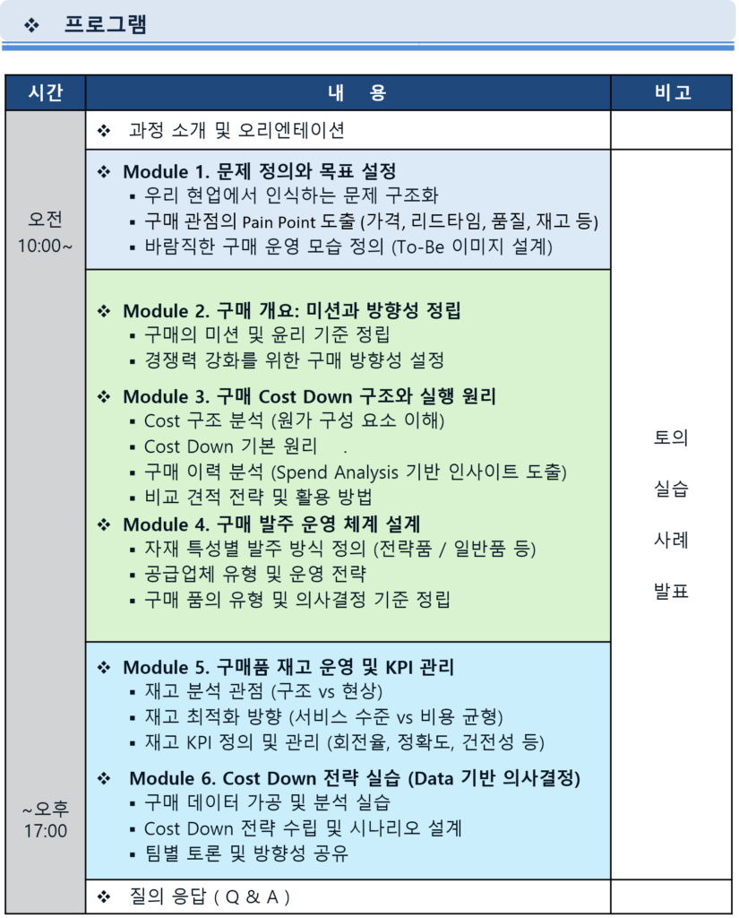구매조달에 대한 기획, 문제해결, 운영개선, 학습 등이 필요하신 분