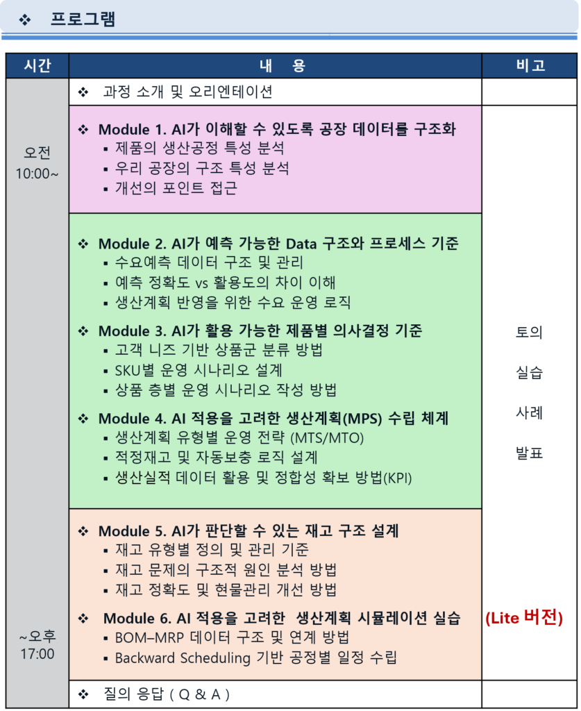 2026년 교육 안내 : AI 활용을 위한 생산계획 & 재고관리 실무마스터 과정 (안내장은 맨아래에)